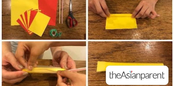 Materials needed: 2 pieces of paper, scissors, drinking straw and tape
