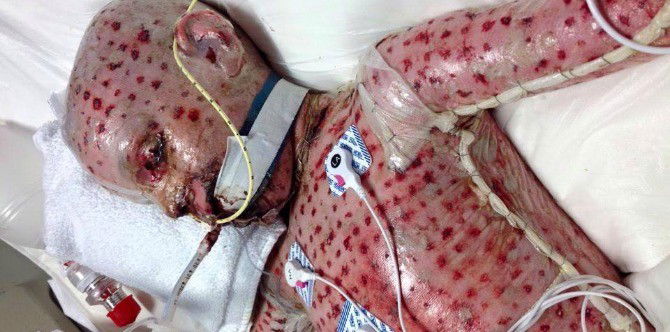 A dermatologist did a biopsy on Zachary, which revealed more bad news. The SJS had morphed into TEN (Toxic epidermal necrolysis).