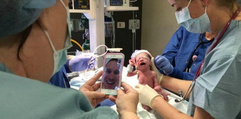 For this army father posted in South Korea, he got the best next thing: being with his wife virtually, using FaceTime to watch his wife give birth to their four new babies via C-section.