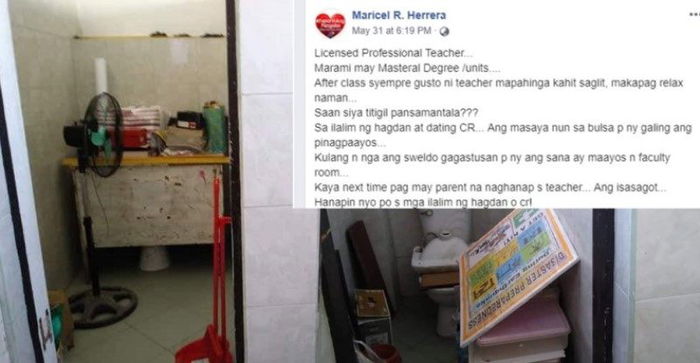 Base sa Facebook post ni Teacher Maricel Herrera na faculty president din ng Bacoor National High School ay kinailangan nilang maglabas ng pera mula sa kanilang bulsa at ipaayos ang mga CR na hindi na nagagamit ng paaralan para gawing faculty room.