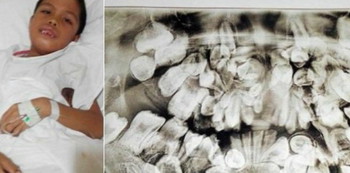 If you’re like most people, chances are you had a set of 20 baby teeth, and when those fell off grew 32 adult teeth in replacement. 9 year-old Johnchris Carl Quirante from Cebu, Philippines is not like most people.