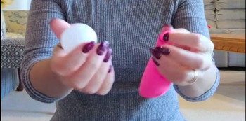 Then she proceeds to squeeze the sides of the balloons gently.