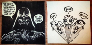 Biddulph usually draws characters from popular children’s cartoons and books, as well as the occasional Star Wars villain.