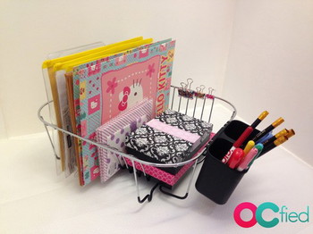 If you have an extra dish rack at home, you can use this to organize your envelopes, folders and pens!