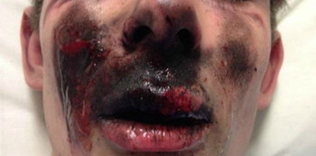 Blackened skin, lacerations, and burns