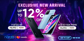 As an early-bird offer exclusively via the narzo Official Store on Lazada, the narzo 50A Prime and the narzo 50 will be available for up to 12% OFF on May 18 to May 20. Gamers can cop the narzo 50A Prime for as low as P6,990, and the narzo 50 for as low as P8,990.