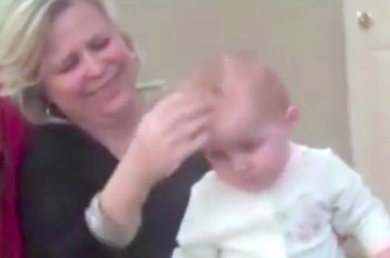In the clip, the baby boy seems to be resistant at first but soon, we see his adorable eyes start to close.
