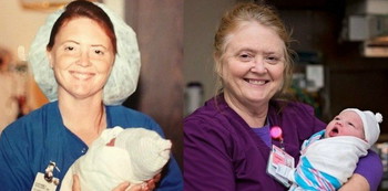 25 years later, Brittany met that angel nurse when she herself was in labor with her own daughter, Caroline, at the very same hospital where she was born.