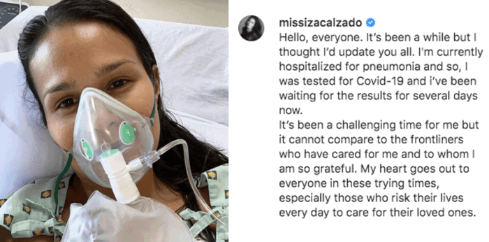Iza Calzado pneumonia COVID-19