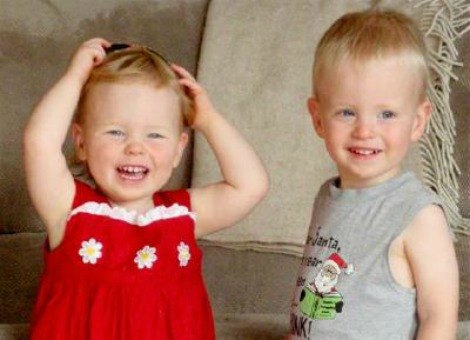 Jamie (right) and twin Emily Ogg at two years old in 2012.