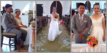 May kasabihan na may mga bagay na “harangan man ng sibat, kumulog man at kumidlat,” hindi na talaga mapipigilan. Para kina Jeff delos Angeles at Jobel Bañares, kahit walang humpay ang hagupit ng Bagyong Karding ay hindi sila mapipigilan sa kanilang pag-iisang dibdib. Kaya naman kahit na may tubig na sa loob ng simbahan, kinasal sa baha ang dalawa!