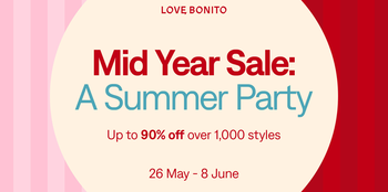 The Mid Year Sale will happen from 26 May, Monday, 12pm GMT+8 to 8 June, Sunday, 11.59pm GMT+8 both online and in stores. Love, Bonito also ships to 20 countries worldwide (free shipping threshold applies). For more information, follow us on @lovebonito.