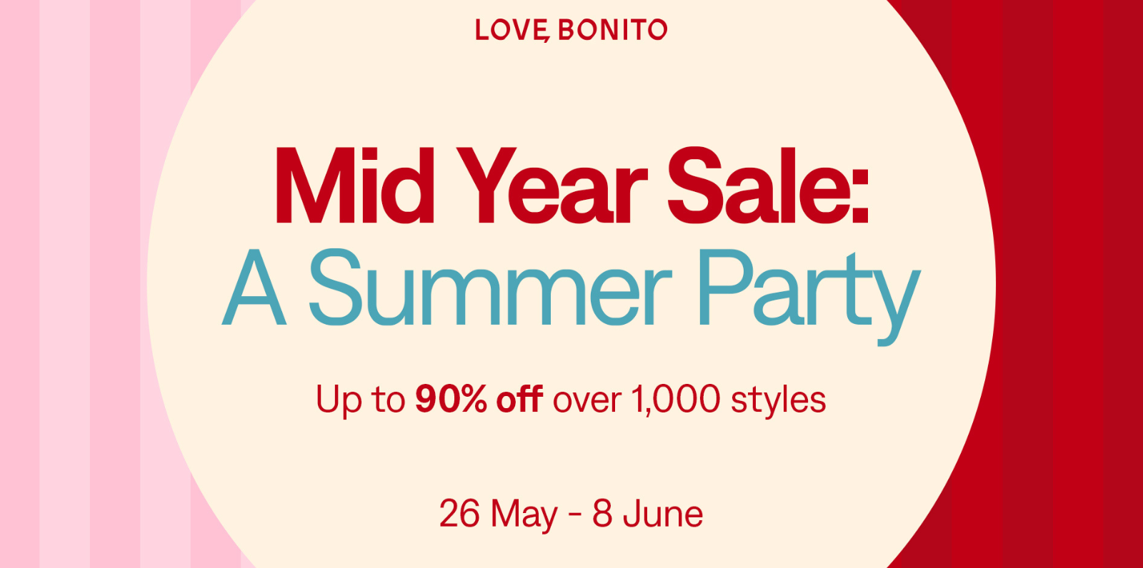 The Mid Year Sale will happen from 26 May, Monday, 12pm GMT+8 to 8 June, Sunday, 11.59pm GMT+8 both online and in stores. Love, Bonito also ships to 20 countries worldwide (free shipping threshold applies). For more information, follow us on @lovebonito.