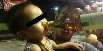 Numerous netizens expressed their anger and concern when a photo of a toddler being forced to drink alcohol by his father became viral online.