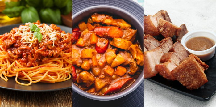 Kaldereta, also known as caldereta, is a Filipino goat meat stew. The dish can be made with beef, chicken, or pork. And the most common caldereta is made from goat meat with stewed vegetables and liver paste.