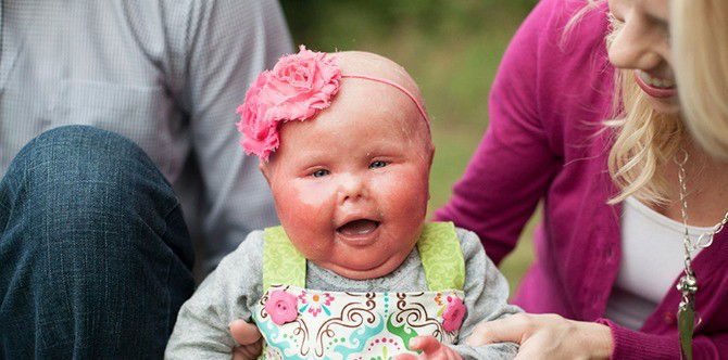 “You may first notice Brenna’s deep red coloring or her dry skin flaking off as she plays…but once you allow yourself to see beyond that, you’ll simply see a child enjoying life with her brother and her parents. You’ll see a child who loves animals and pizza, who loves to read, who throws temper tantrums, and who will jump at the chance to go to the library or the park.”