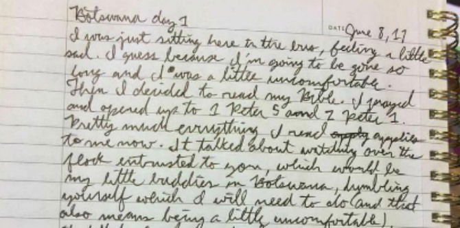 She then writes “Pretty much everything I read applies to me now … I mean, how awesome is that? So mostly, I was just reminded of why I’m here and that God has called me here and He’s done so for a reason. So I know He’s going to do incredible things.”