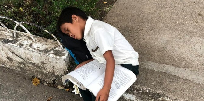 Isang larawan ng mag-aaral na nagpapakita ng pagka pursigido mag aral ang nag-viral sa social media. Sa post ni Sha Lim Pua, makikita ang mag-aaral na tulog habang may hawak na sampaguita at libro.