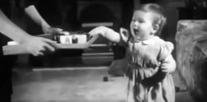 It starts of with a baby Charles excitedly trotting along as his mom, Queen Elizabeth II held up a tray of blocks in front of him.