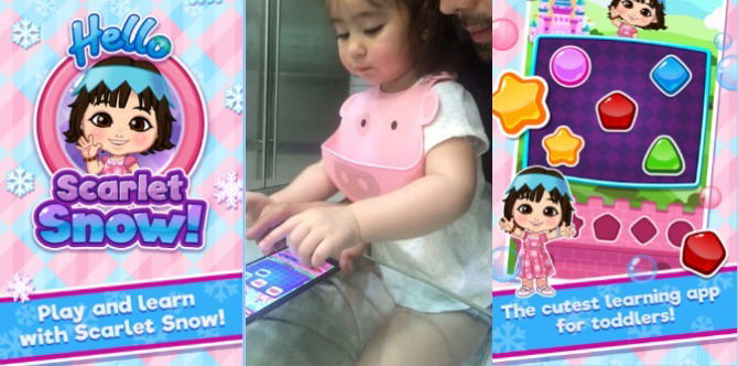 Once you download the app, the adorable voice of 2-year-old Scarlet will guide you and your child to spell words, identify colors, and match various shapes. There is also a camera feature, which is programmed with lots of fun stickers.