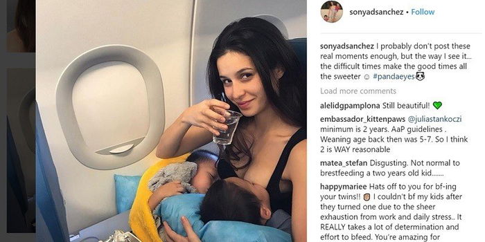 While we’ve come far in the movement to #normalizebreastfeeding, we still have a long way to go. This is most recently showcased by celeb mom of two and stunning model Sonya Davison, when she posted a gorgeous picture of herself and her twin toddler boys in a flight.