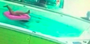 In the clip (you can view it below), a toddler splashes around before he tips over. He struggles to keep his head above water, but a swimming ring keeps him submerged. Unable to turn his body upright, he flails his legs about.