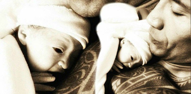 When he posted a first photo of them together, fans couldn’t help but swoon at the sight of the burly actor cradling his tiny newborn safely on his chest.