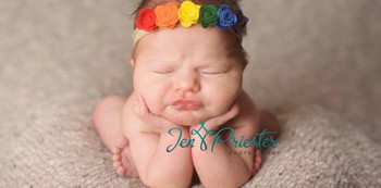 After that, they took extra newborn colored wraps to form a rainbow. Upon closer inspection, you’ll notice that the rainbow is upside down.
